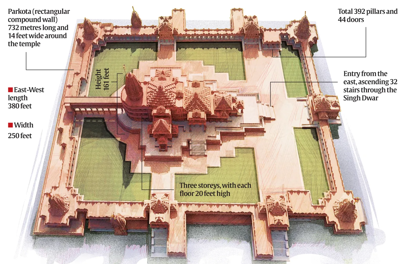 Some of the major architectural highlights of Ram Mandir can be seen as follows: